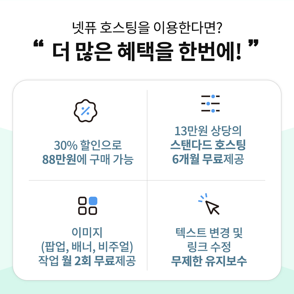 | 넷퓨에서 새로운 솔루션 회사소개 홈페이지 A,B를 출시하였습니다! (회사홈페이지 제작업체 넷퓨) (0) | 2024.05.21 |