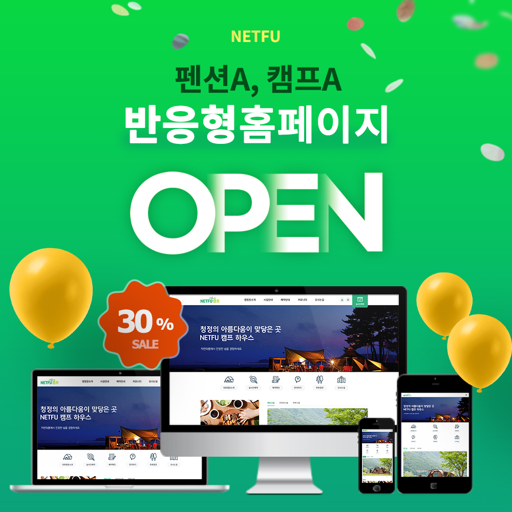 넷퓨에서 새로운 솔루션 캠핑A, 펜션B를 출시하였습니다!